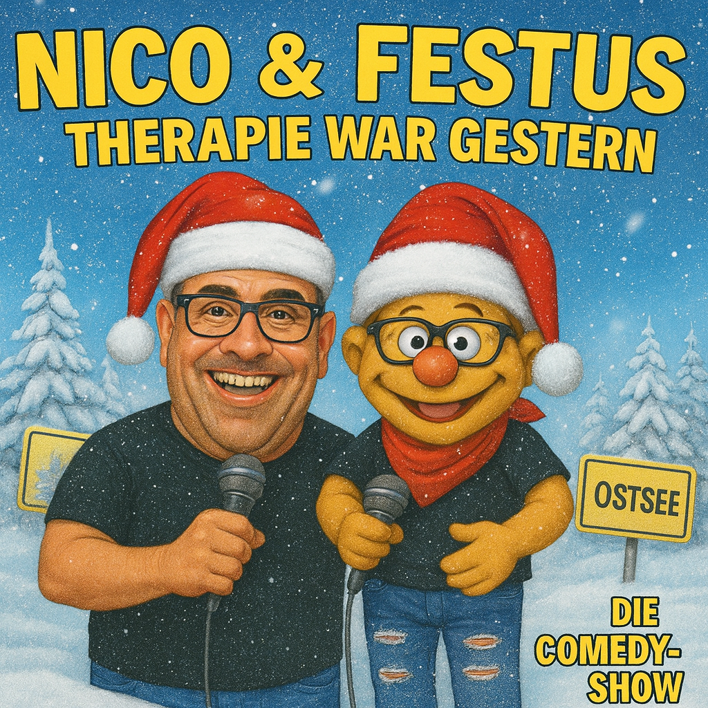 Festus und Papa Nico bringen ihr Erfolgsprogramm „Therapie war gestern“ in einer ganz besonderen Weihnachts-Edition auf die Bühne.